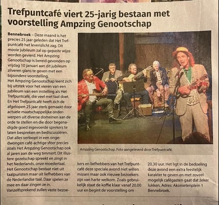 14 december Ampzing Genootschapsmiddag in de Oerkap 14.00 uur. Gratis toegang.